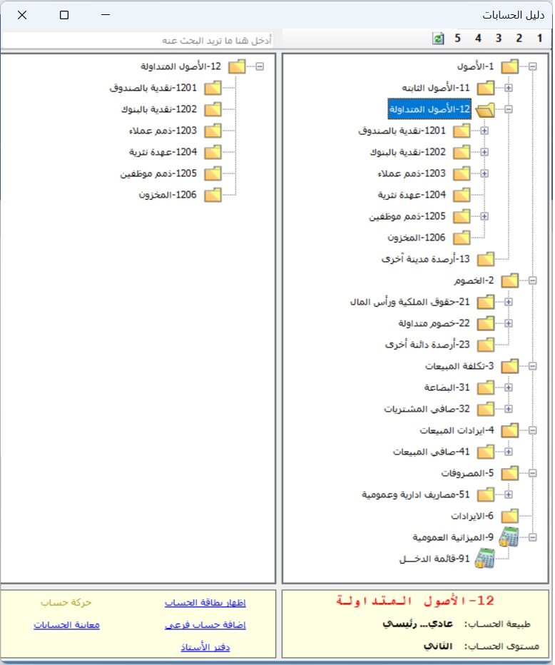 One of the key strengths of our software is clarity of information and ease of use. This is achieved by presenting concepts in a scientifically recognized and well-structured manner. One of the most important screens in the system is the Chart of Accounts screen, which displays all registered accounts used in vouchers and transactions. This screen is divided into two sections.